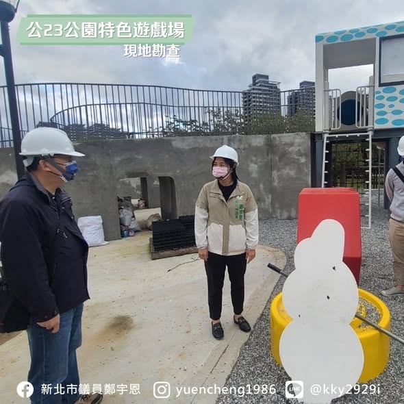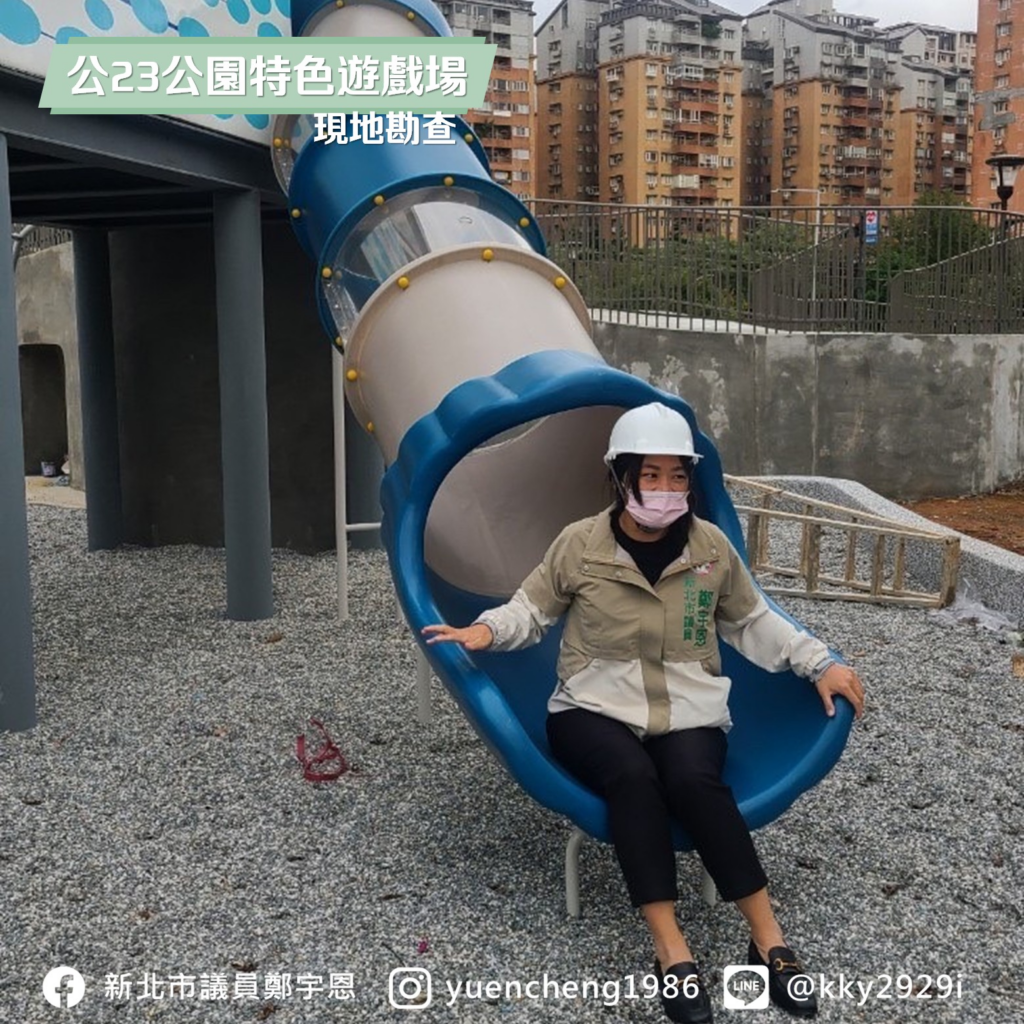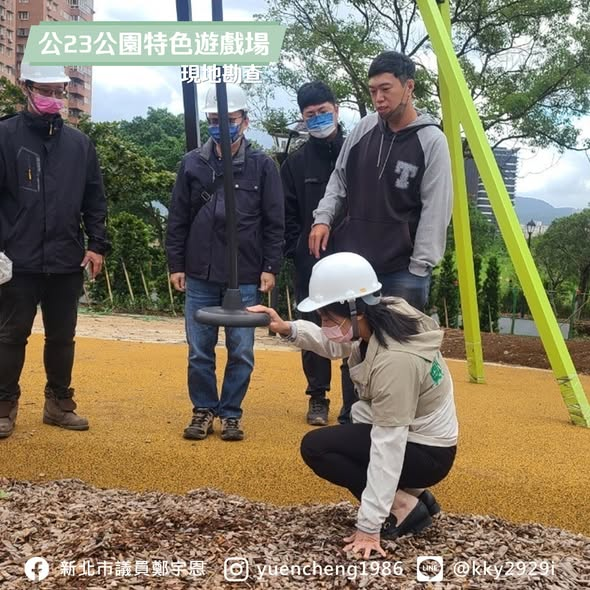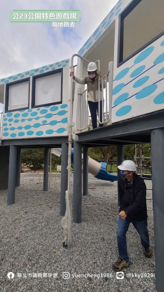 這座遊戲場不只有特色,也需要共融,當然要為身障的孩子考量,宇恩提醒公所,要全場域的落實 #無障礙環境,從公園入口到洗手台都要注意 。