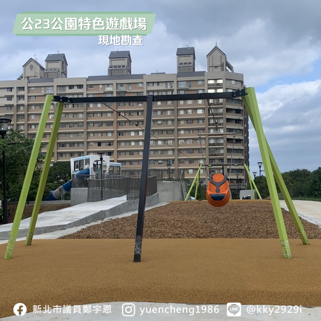淡水最大的公23公園特色遊戲場終於進入到完工階段了!以淡海輕軌為主題的車廂、攀爬網、溜滑梯,還有溜索、鞦韆和沙桌,豐富又好玩的遊戲設施,恐怕會讓小朋友會玩到不想回家~