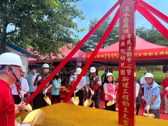 在公23公園靠近新市三路一段側,未來一年期間 #崁頂市民活動中心暨公共化幼兒園新建工程 ,預計明年6月底完工,最快8月將展開招生和啟用。