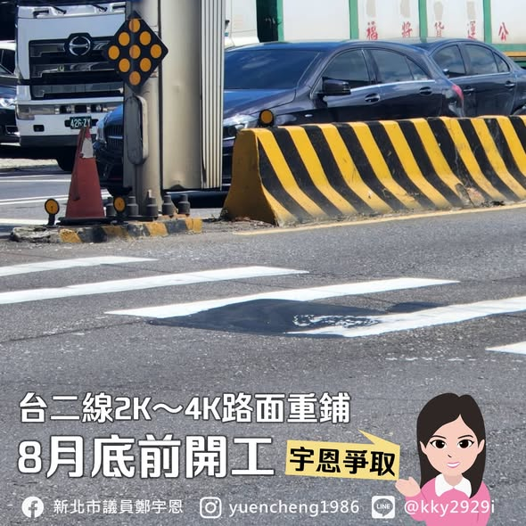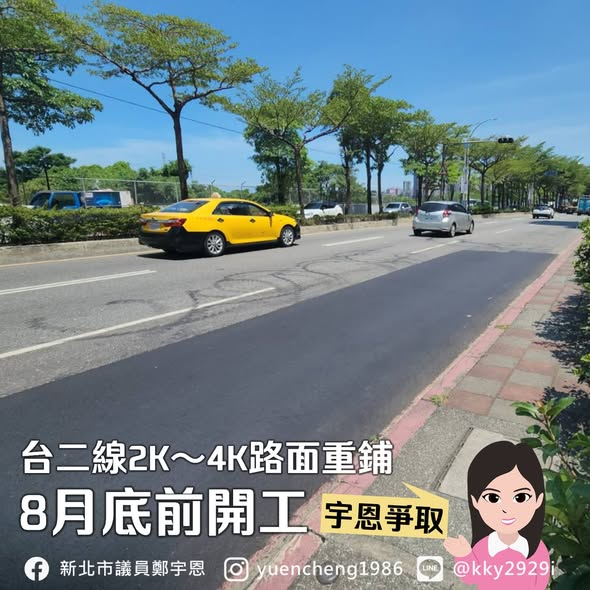 台二線是鄉親出入淡水的重要道路,雖然施工往往需要考量車流需求顯得困難,但提供用路人安全的道路環境是最重要的課題,宇恩會持續督促相關單位有效提升重要幹道的路面平整度!