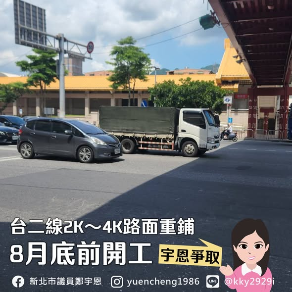 宇恩持續要求公路總局和相關管線單位積極處理,其中從 #華碩雲創園區 到 #坪頂路口 (2K~4K)路段,確定由公路總局運用專案經費,自8月底前展開重鋪,寶雅紅樹林店前因為有立即危險,已經先行局部改善,不過待工程正式進場後會將全線雙向全數重鋪。