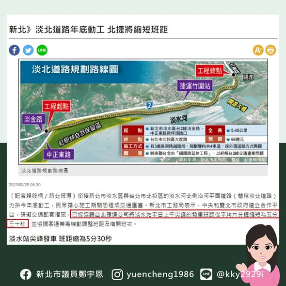 大家最近新聞應該有看到,「新北市工務局表示,中央和雙北市政府建立合作平台,研擬交通配套措施,已經協調台北捷運公司將淡水站平日上午尖峰的發車班距從平均6分鐘縮短為5分30秒,並協調客運業者機動調整班距及增開班次。」