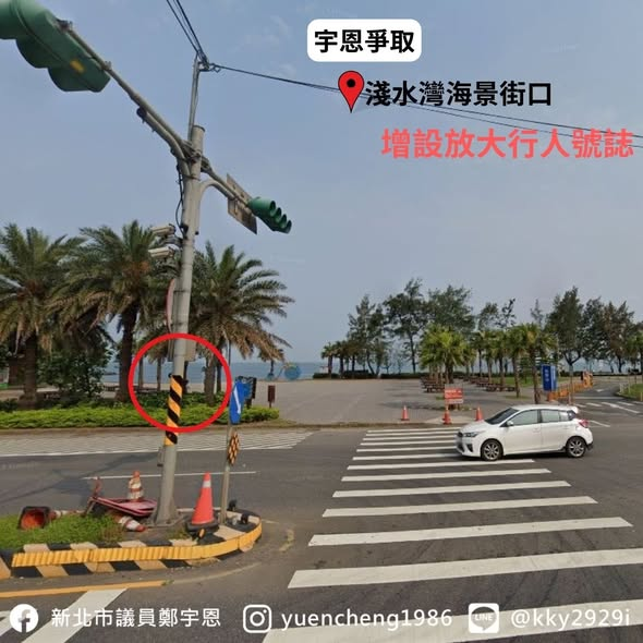 宇恩爭取 #海景街口放大型行人號誌,建議交通局畫設 #標線型人行道
