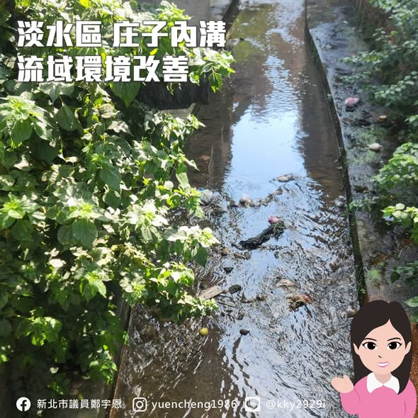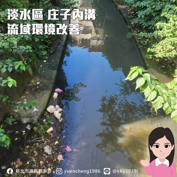 短期先由公所協助清除垃圾及護岸雜草,方便環保局來清查匯流入庄子內溝的管線。也因為庄子內溝溪流經市區的部分,有多段加蓋的地方也讓環保稽查不易。宇恩也請環保局研究除了空拍以外,有沒有船型拍攝或其他方式可以來做因地制宜的稽查作為。