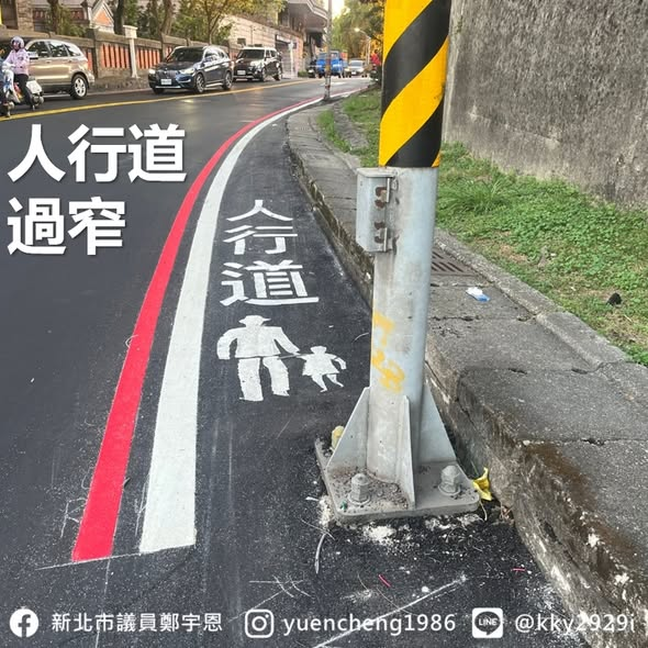 行人穿越道畫完後,對向 #人行道過窄,常和路邊車輛擦肩而過的問題也顯現出來,而宇恩也會盡力去改善以上問題,好好的落實 #人本交通![]()