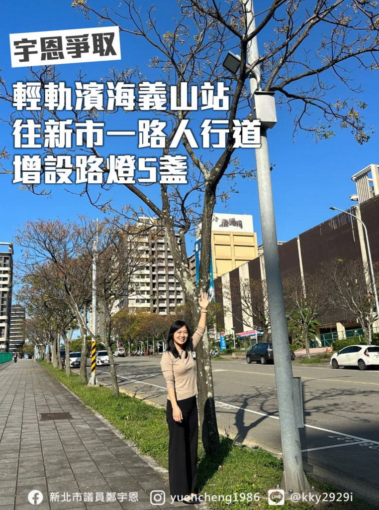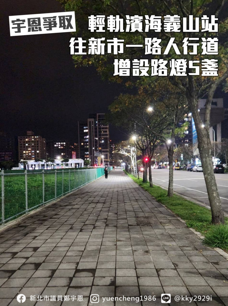 成功爭取 輕軌義山濱海站 人行道側增設路燈5盞