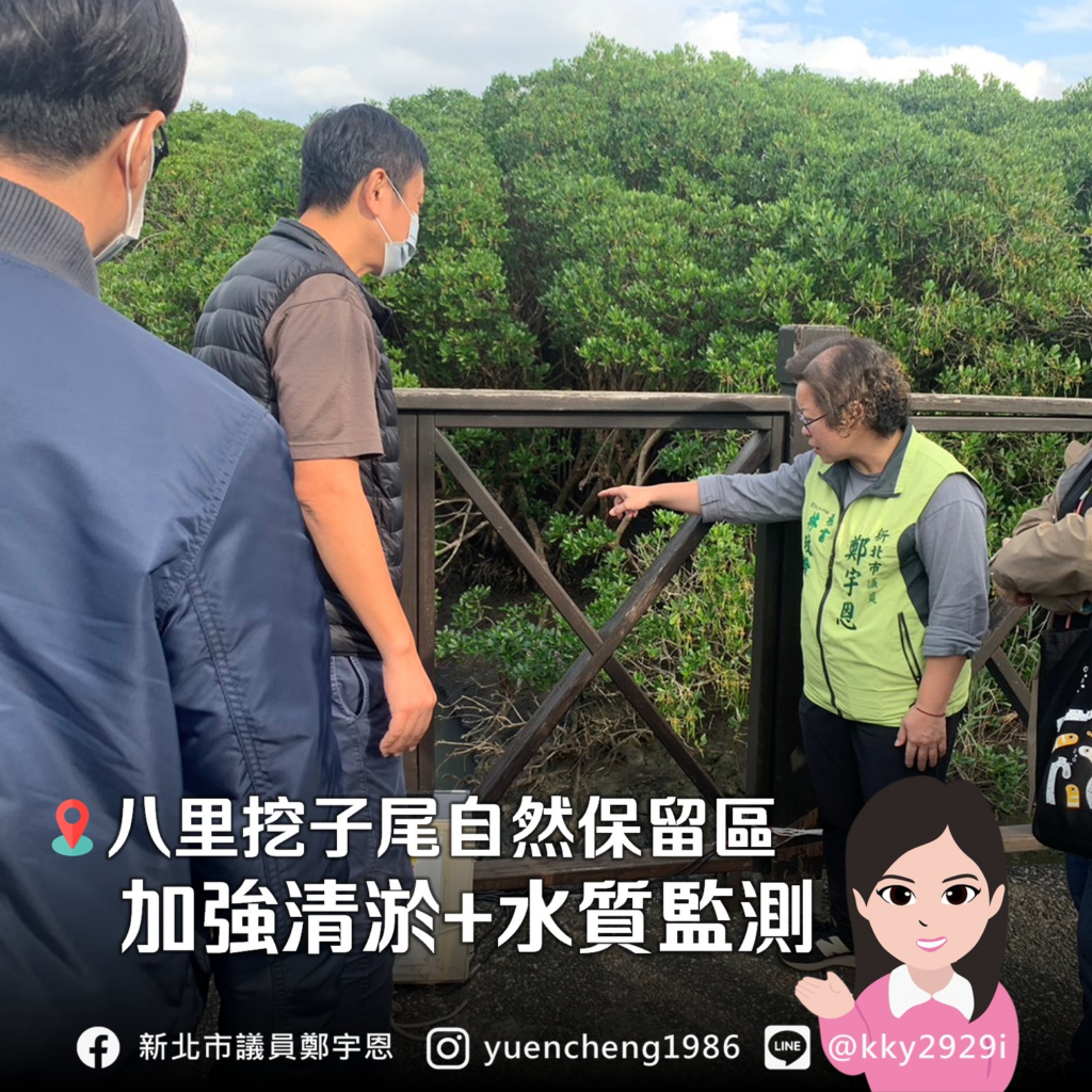 去年底有民眾向宇恩反映,八里挖仔尾保留區範圍內有一處大排水溝,時常傳出惡臭,擔心是有偷排廢水的問題,經過環保局第一時間前往採檢並沒有發現異常。推測是受到潮汐和區域生活廢水影響,水體流動較差,造成生物厭氧反應而產生的氣味。