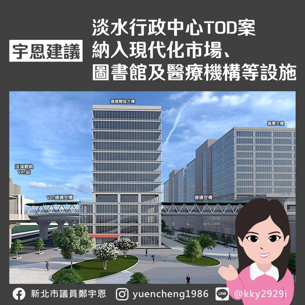 1. #淡水行政中心TOD案納入:TOD案由國土署(營建署)和新北市政府共同開發,目前規劃採標售形式,受捷運開發財務規劃影響,可回饋空間有限,但可透過參建或是鼓勵民間自辦的形式來規劃。優點是市場區位、緊鄰社宅和捷運連接的便利性,可以支撐市場客源;雖然在取得所有權及推動上,因為牽涉國土署和民間投資,會格外複雜,不過捷運局也承諾會先將地方需求納入招標文件供廠商來評估。