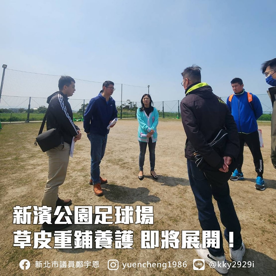 淡水第一座的天然草皮足球場,還有滯洪池兼做寵物活動區的新濱公園,在啟用一年半以後,幾乎每半年宇恩就要邀集相關單位一起來現勘,因為草皮維護的課題仍然是最大的挑戰。