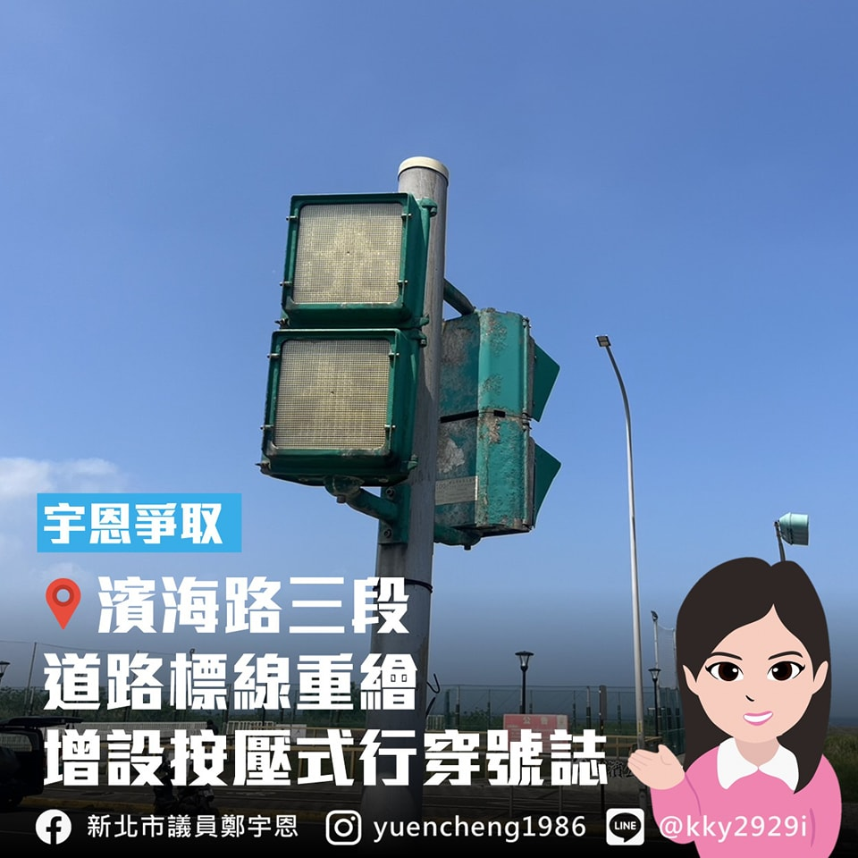 宇恩爭取 濱海路三段 道路標線重繪、增設按壓式行人穿越號誌