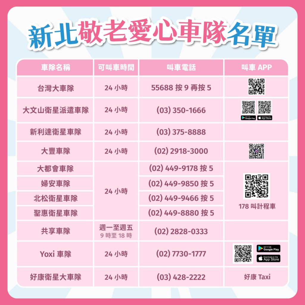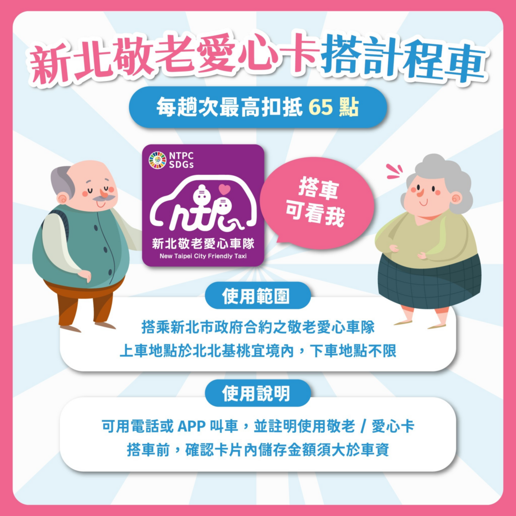 需搭乘市府合約敬老愛心車隊,請認明貼有敬老愛心車隊貼紙
