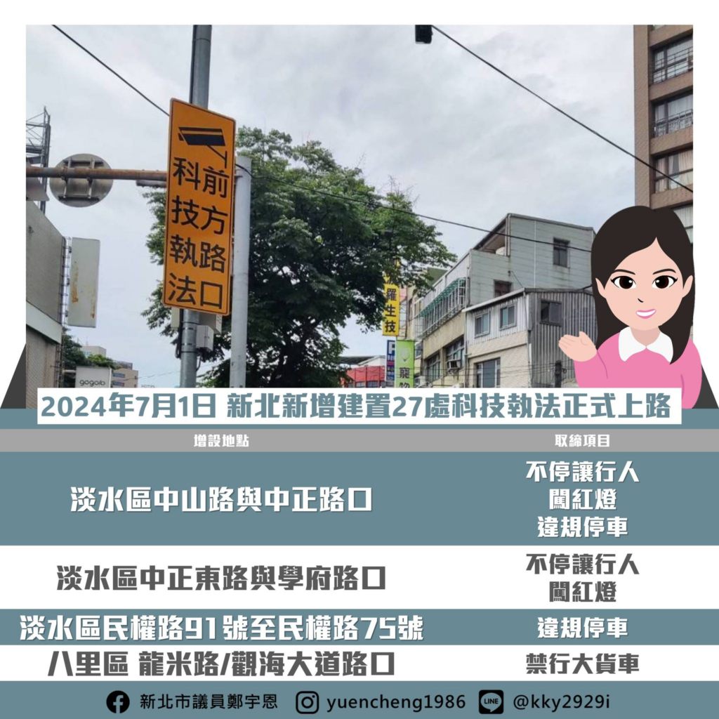 新北市針對易肇事及易違規路口,目前已經架設了53處科技執法,7/1起將再有27處科技執法正式上路。