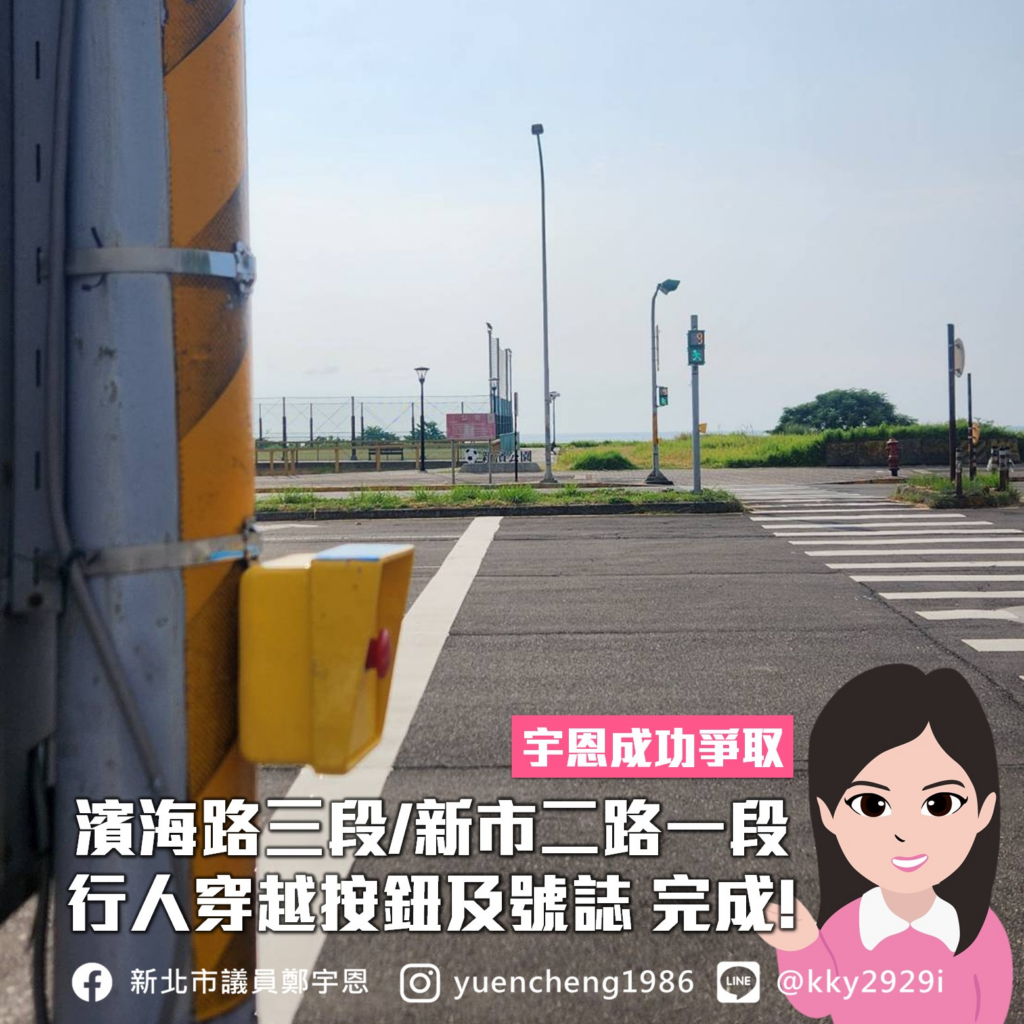 淡水區濱海路三段/新市二路一段 行人穿越按鈕及號誌裝設完成!