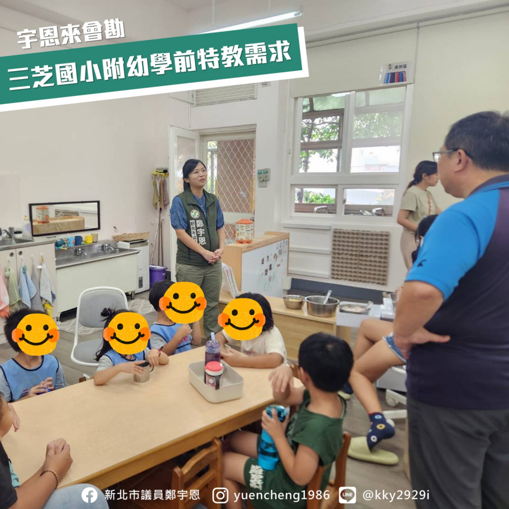 去年三芝國小附幼新增了 #學前特教班,由三位用心的老師,帶領多位特殊需求的幼兒學習。宇恩聽說學前特教的孩子在資源上仍有不足,於是實地來到學校了解,比方說孩子需要的教具、共融的遊戲器材,還有通往遊戲場的無障礙坡道。宇恩也答應校長和老師會努力,來爭取更多資源照顧這些特殊需求的孩子,讓每一個孩子都可以快樂成長!