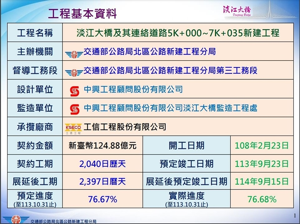 感謝中央及新北各單位對淡江大橋的重視及推動,也謝謝所有施工團隊的辛勞,共同為改善淡海地區聯外交通而努力!