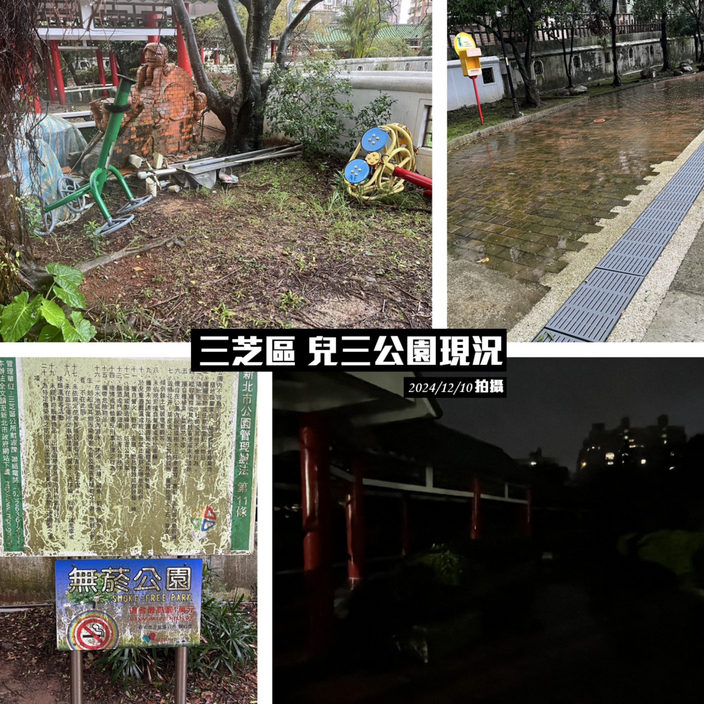 平常大家在社群上討論許多公園環境不佳的問題,民眾亂丟垃圾的狀況固然需要大家發揮公德心,但我們昨天實地前往 #兒三公園,卻發現公所將廢棄的體健設施、牌面桿座,和枯枝樹葉一樣堆在公園角落,環境堪比資源回收場。滿是青苔濕滑的地面、入夜後昏暗的空間,嚴重影響使用市民的安全。