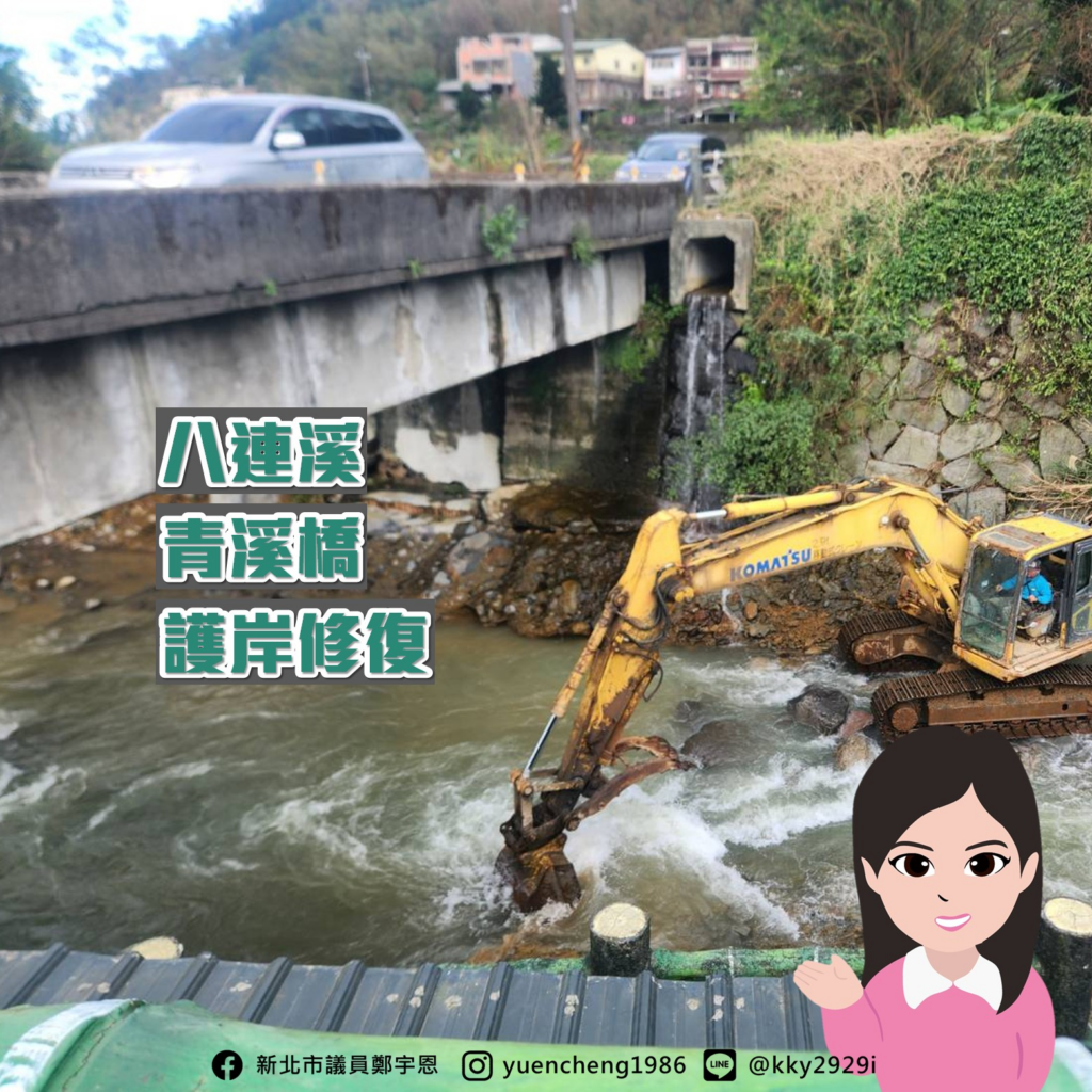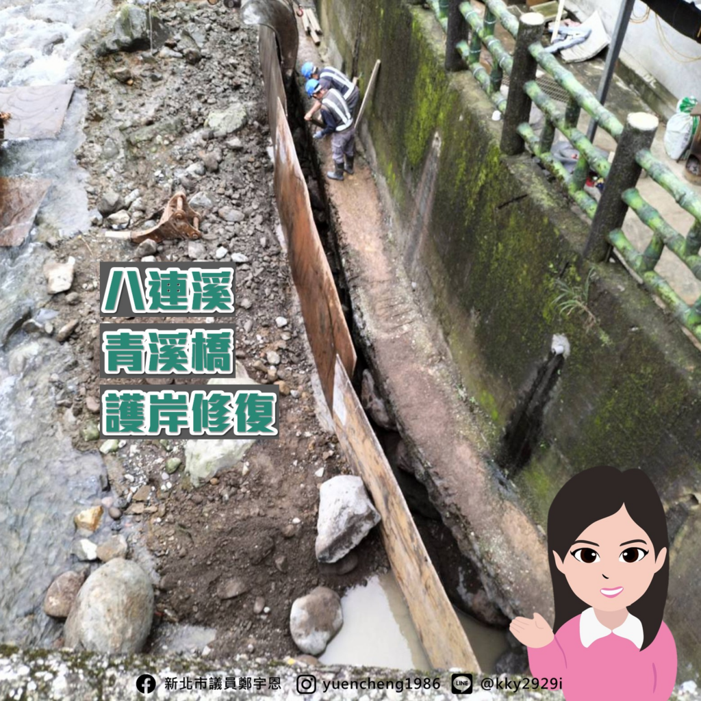 三芝的八連溪更是這次災情最慘重的,目前正由農業局及水利局分別展開護岸修復工程,而涉及橋梁橋墩掏刷問題,宇恩服務團隊也要求養護工程處進場維護。