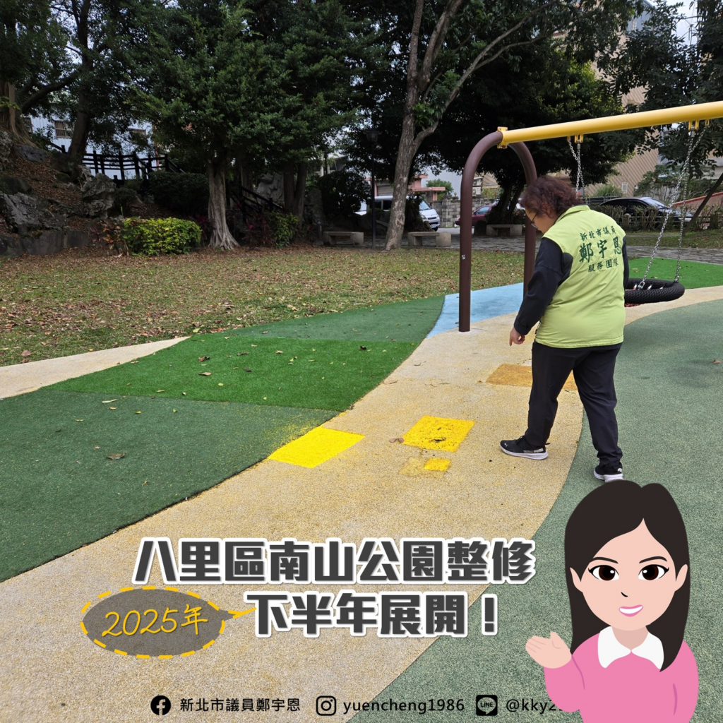四年前,宇恩成功爭取到位於賢三街及賢二街口的南山公園大改造,讓原本隱蔽、老舊的南山公園煥然一新,不過隨著使用率增加,遊戲場地坪損壞的情況也日漸嚴重,儘管公所多次修補,但無縫地墊的狀態也越來越差。
