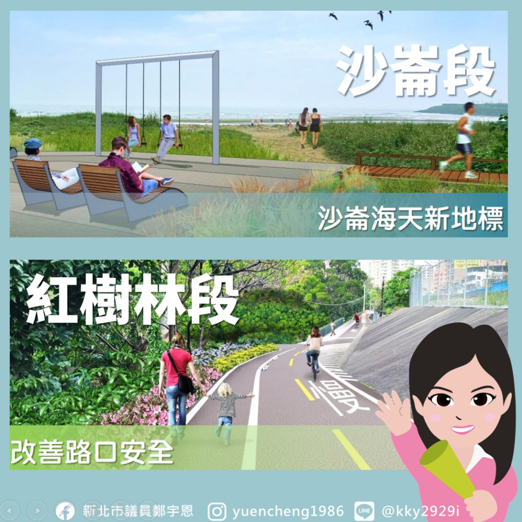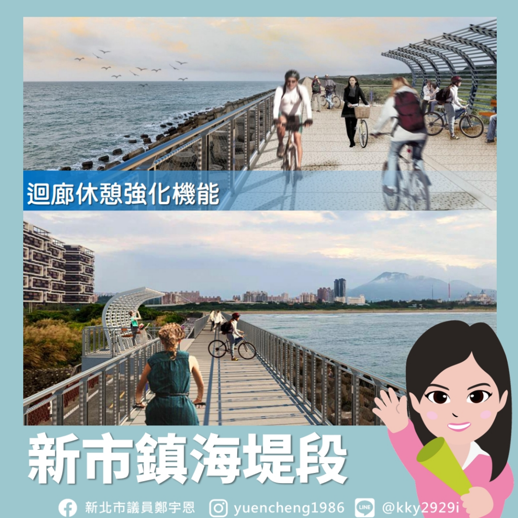 ,為 #新市鎮海堤段 將興建堤頂自行車道,並設觀海平台,讓騎士享受遠眺海洋的騎行體驗