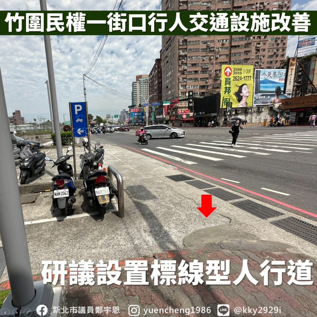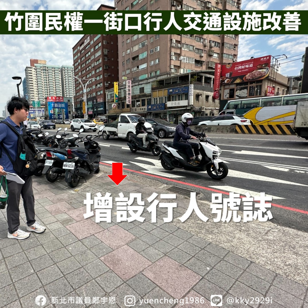 竹圍捷運站附近行人、車流量十分龐大,又加上 #淡北道路 施工會有大量土方車進出,宇恩特別要求 #確保行人安全為優先 ,完善各項交通設施。