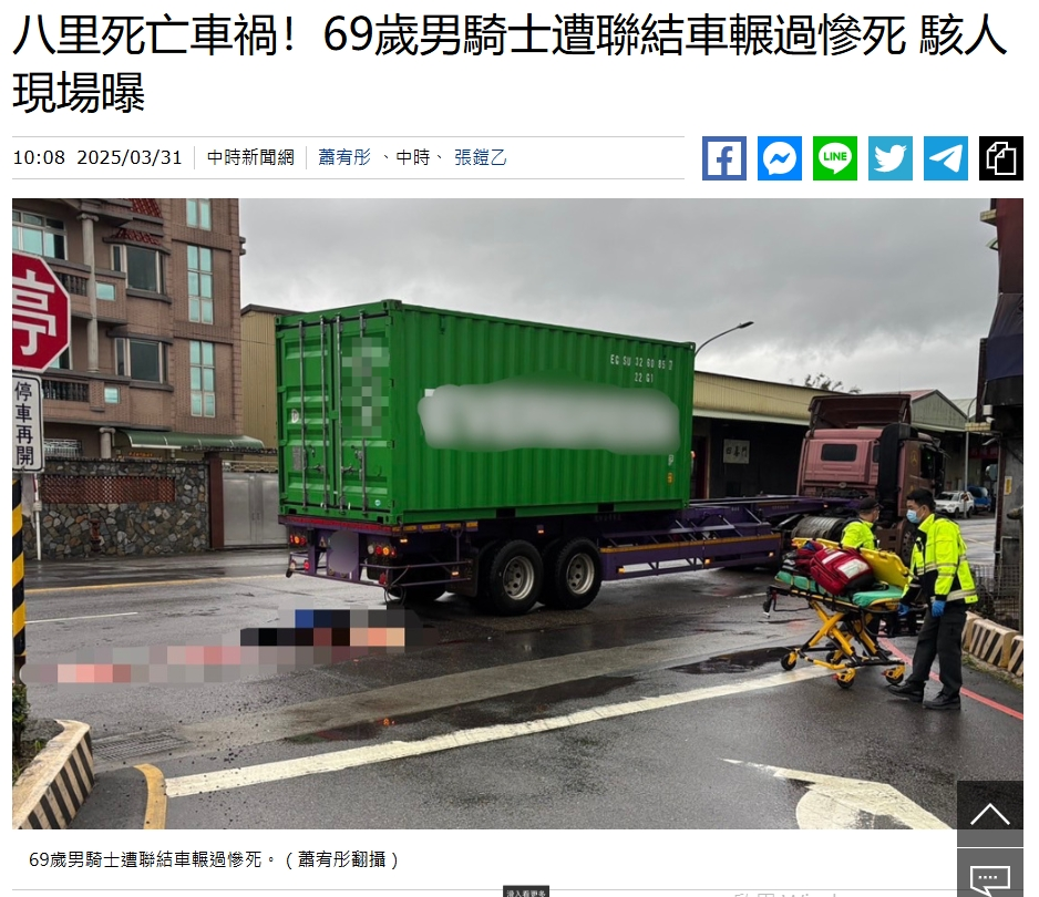 昨天在八里中華路三段那處令人不忍卒睹的事故現場,看在許多八里鄉親眼中,都是無奈,因為此處路段車流複雜,更有許多大車行經,本就是事故熱點。去年二月,宇恩邀集相關單位,希望分局增設監視器、檢討整體道路規劃,提醒用路人減速慢行,當時各單位的態度顯得消極。