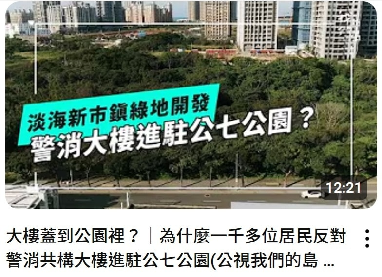 近期公視 #我們的島,針對公七公園即將興建新市派出所和淡海消防分隊做了一則專題報導。大家最質疑的問題:「為什麼要用公園用地?」
