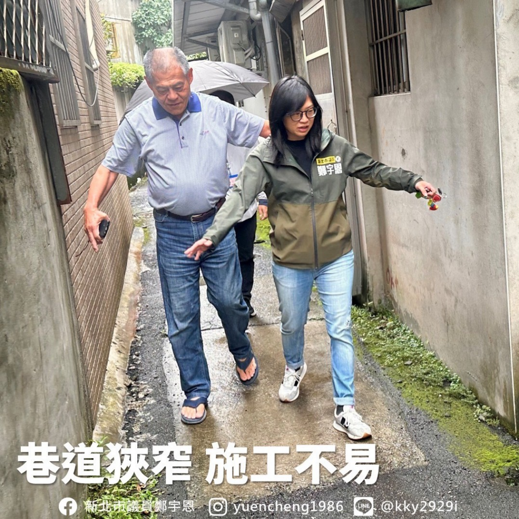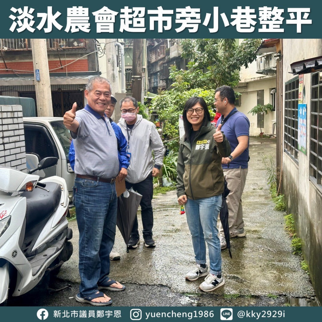 宇恩與 #中興里江慶發里長 一同到現場會勘,由於該巷道為排水設施加蓋所形成的通道,加上狹窄不易施工,經協調已由 淡水區公所 來施作整平。