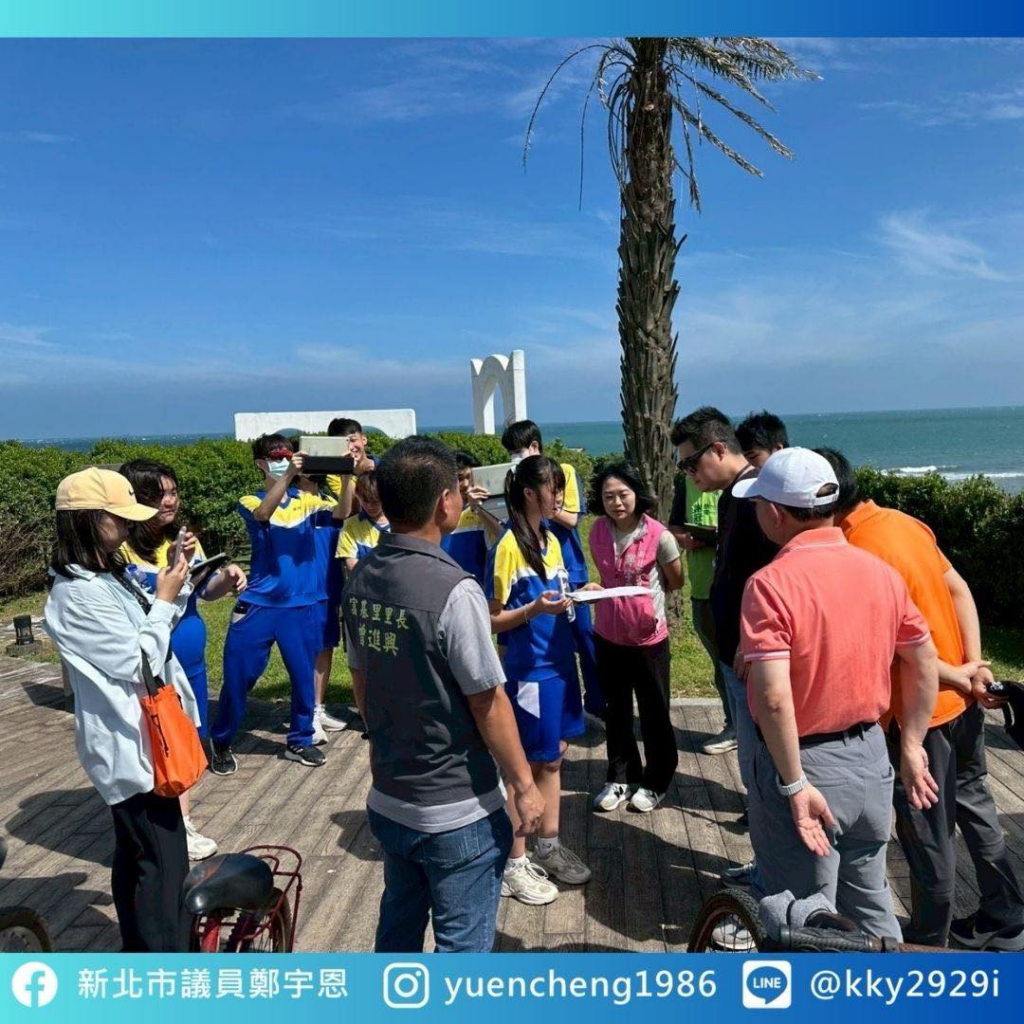 石門區婚紗廣場作為北海岸觀光熱點,也是北海岸觀光自行車步道的交通樞紐,再經過 新北市立石門實驗國民中學八年級同學們的事情調查準備,由宇恩來辦理會勘,同學們向交通局說明地方需求,同時宇恩、富基里 曾進興里長及石門吳家兆區長在旁協助,最終做成決議。