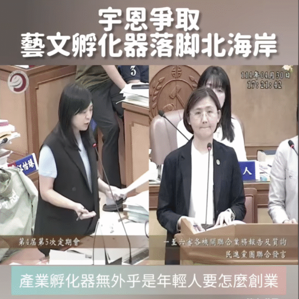 宇恩具體建議新北要來提供藝文團體更多商業化的規劃、市場開發、甚至是媒合政府資金、非營利及企業贊助,尤其是新北文化基金會的資源可以一起納入。