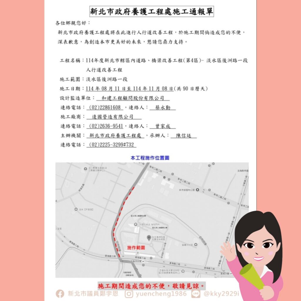 #新北市議員鄭宇恩#淡水區#淡海新市鎮#後洲路#人行道