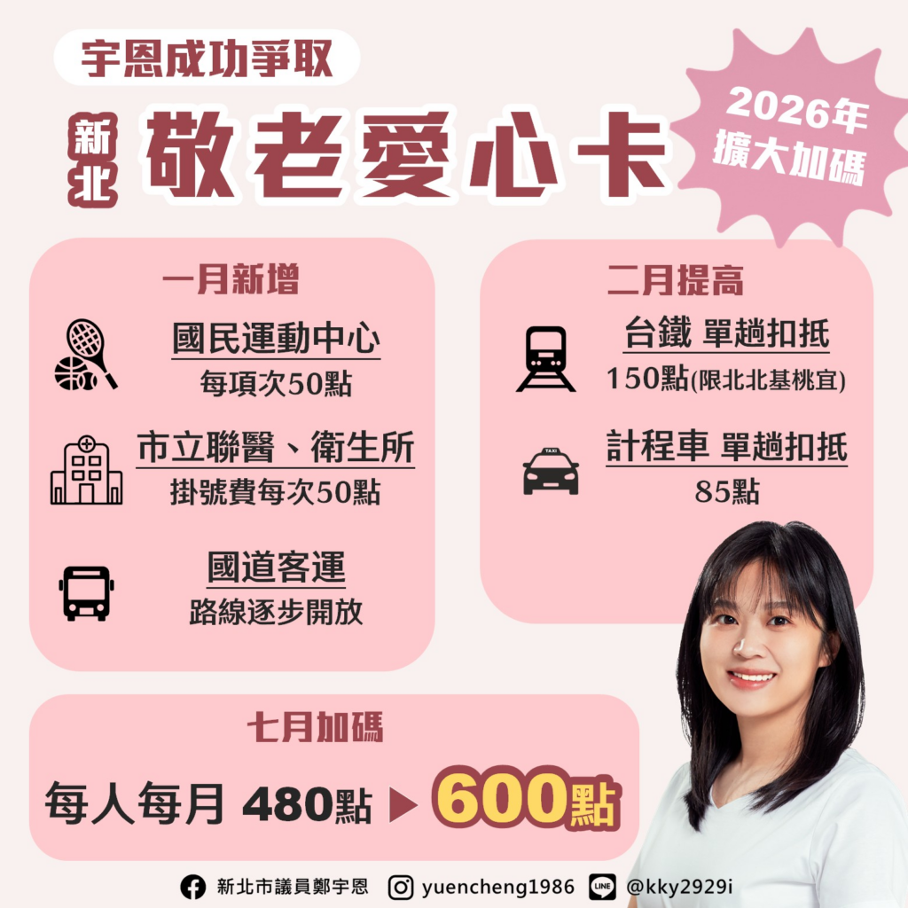 每月點數提高、使用管道更多元,鼓勵長輩們出門活動,越活越健康!