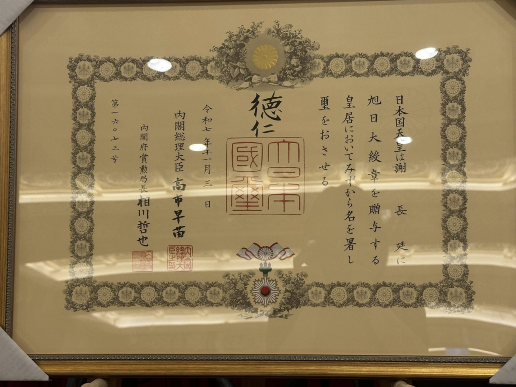 11 月 11 日,謝長廷資政在東京皇居親手從天皇手中接過這份至高榮譽。日本政府肯定他大幅深化台日經濟、文化、地方交流,更讓雙方在天災事故中形成「善的循環」。