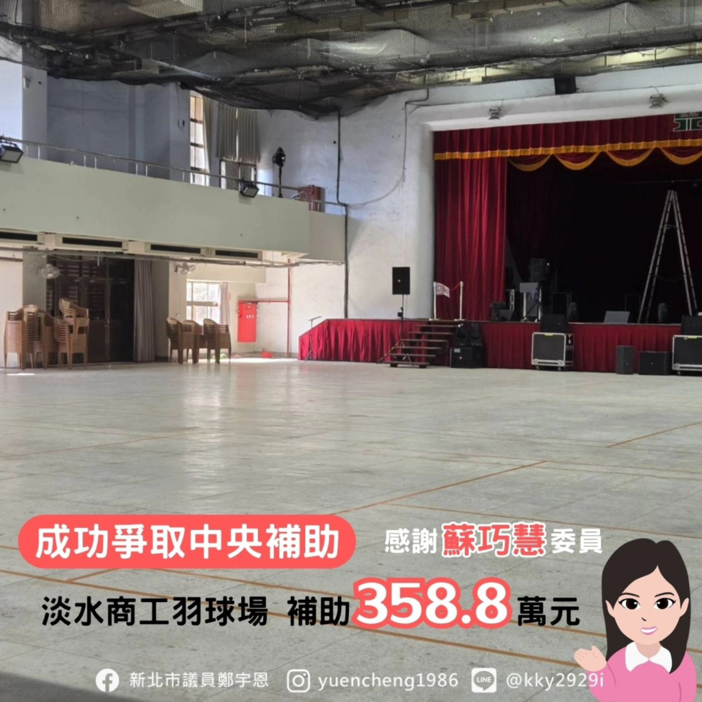 #淡水商工 羽球場整修總經費598萬,中央補助358.8萬