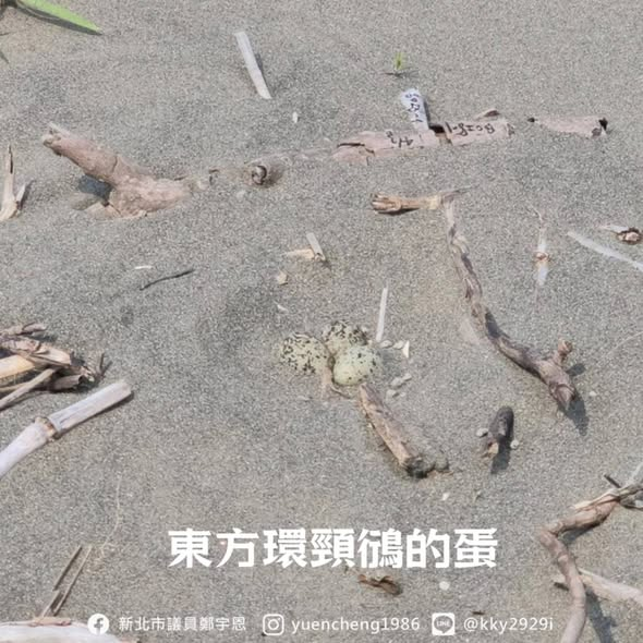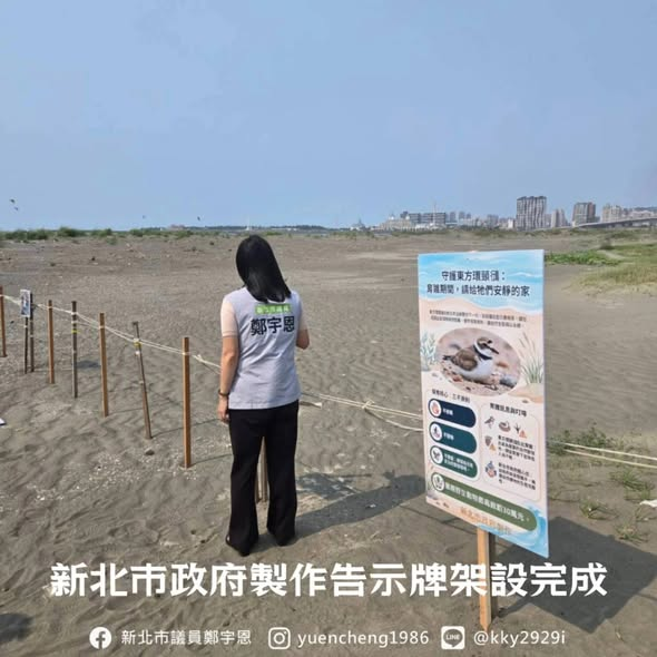 在宇恩爭取下,今天由荒野保護協會換上署名有「新北市政府製作」的告示牌,希望大家避免進入圍籬內,影響東方環頸鴴的繁殖。但也更希望,市府能夠有更積極的管理作為,讓野生動物保護不是只保護受傷的動物,而是從生物的棲地開始保護起。