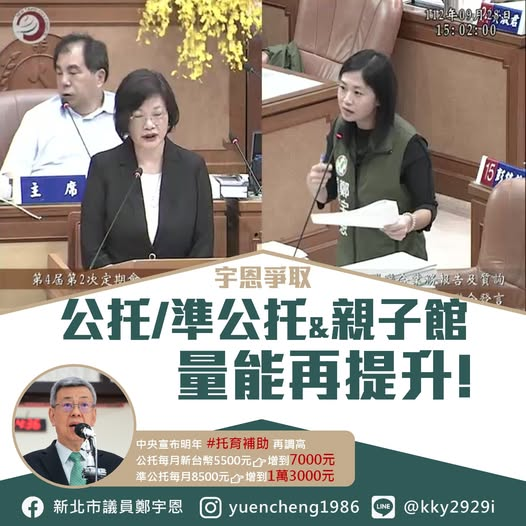 宇恩爭取 新北市公托/準公托及親子館量能再提升!
